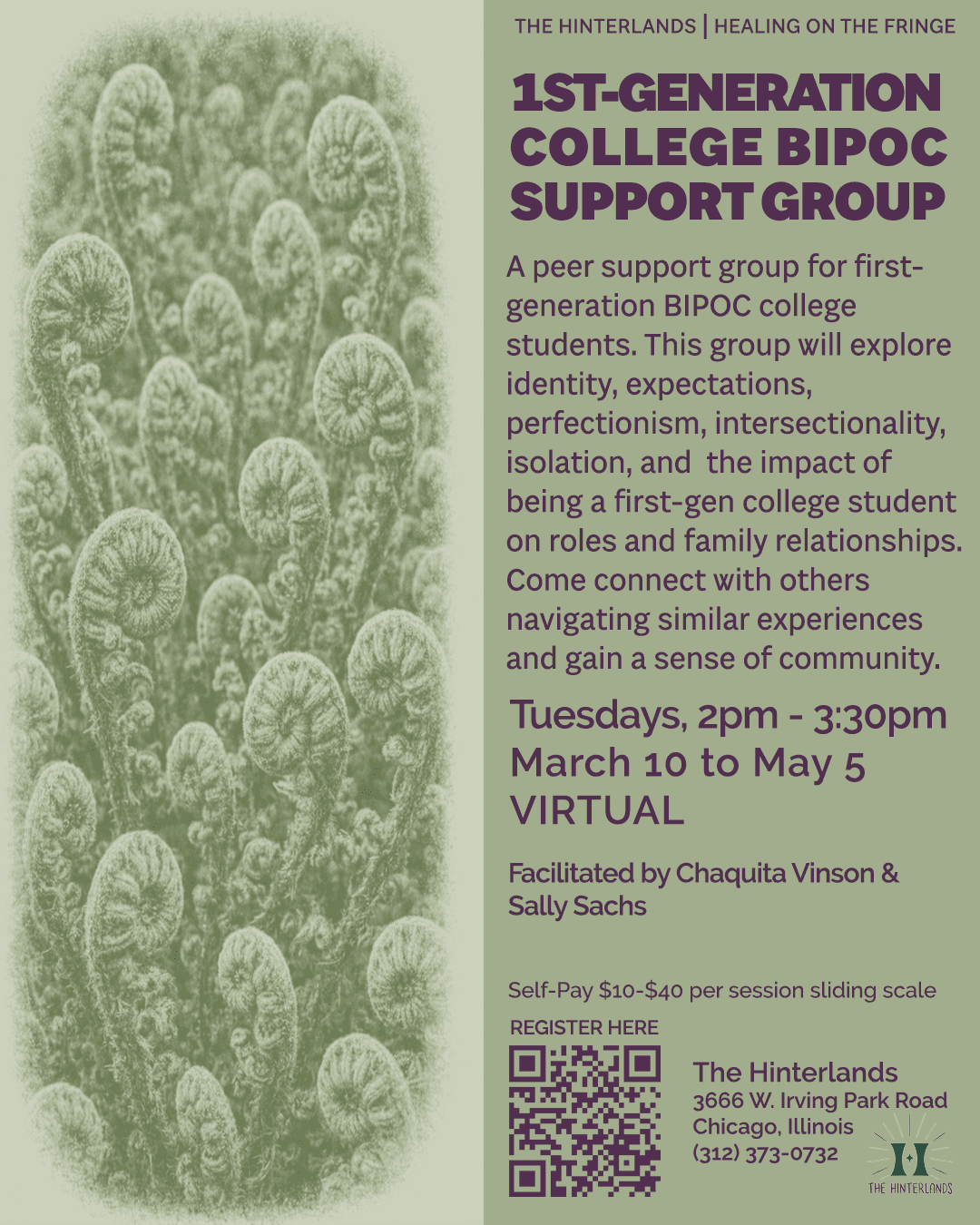 A non-therapy support group for first generation BIPOC college students. Group will explore identity, expectations, perfectionism, intersectionality, isolation, and the impact of being a first-gen college student on roles and family relationships. Come connect with others navigating similar experiences and gain a sense of community. All BIPOC 1st gen college students - community college, undergrad and graduate level students welcome. Meets online and no geographic restrictions.