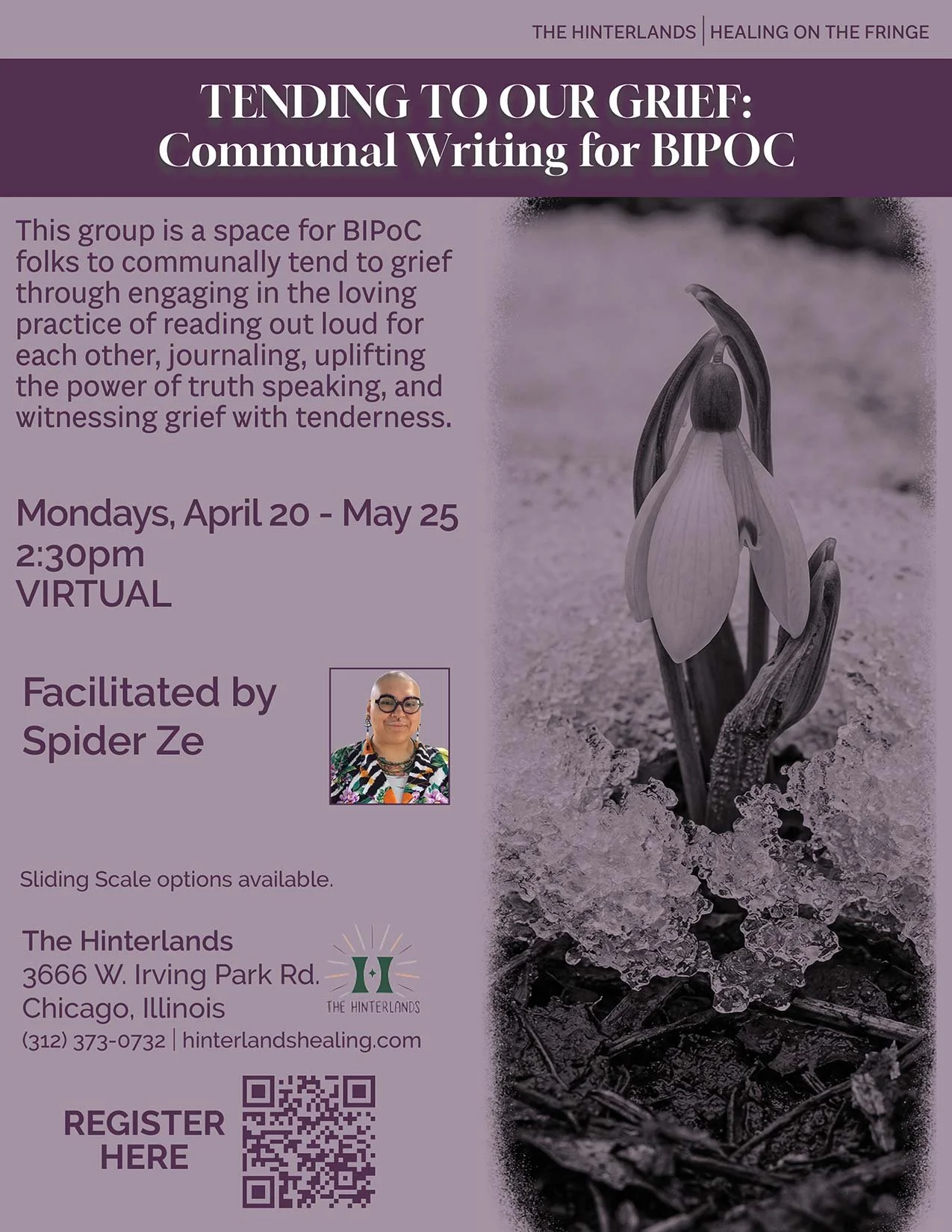 Spider (ze/zir) is a Mexican, queer, agender, neurodivergent therapist and spiritual leader. Ze is passionate about using creative tools to foster communal healing and liberation. Spider is committed to supporting folks of the Global Majority, LGBTQIA2S+ folks, folks with disabilities, and folks invested in accessibility and justice. This group will meet virtually at 6pm on these days: April 20, April 27, May 4, May 11, May 18, May 25. Sliding scale options available.